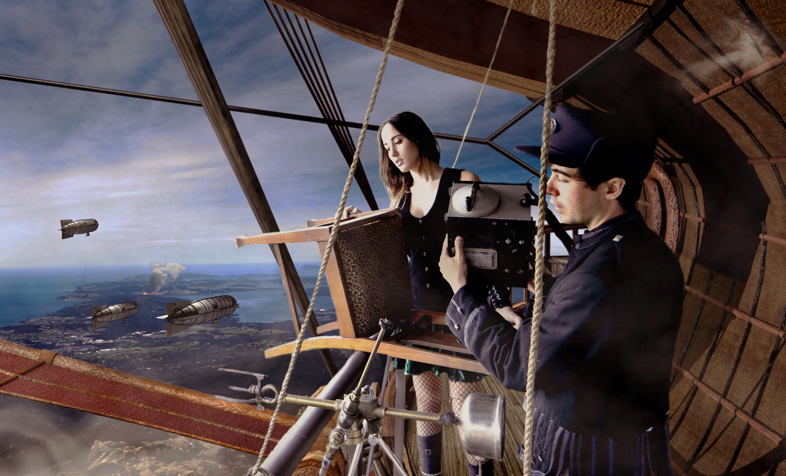 The Elly May was just sitting there unguarded. Athene had had a premonition. The Confederation must have confiscated it, then forgotten about it. They climbed aboard and cast off. Lysander went to the engine room and stoked up. Athene looked after the helm.The airship is loosing gas. Time to lighten the load.